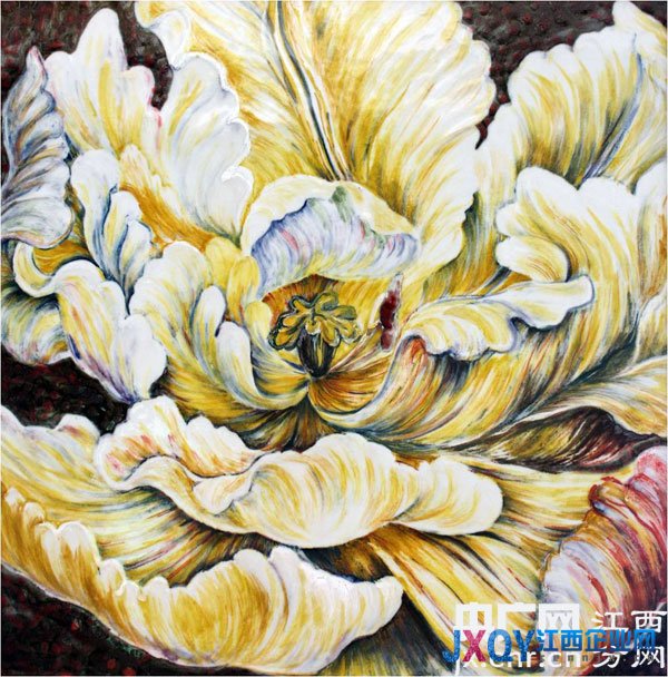 蘇姍對(duì)“向日葵”題材的創(chuàng)作情有獨(dú)鐘。作為蘇姍的授業(yè)恩師,中國工藝美術(shù)大師李文躍教授認(rèn)為蘇姍的“向日葵”作品既脫去了傳統(tǒng)各式陶瓷繪畫的羈絆,又不同于前人與他人那般運(yùn)用陶瓷材料,將中國傳統(tǒng)繪畫的筆意與西方現(xiàn)代繪畫的構(gòu)成觀念巧妙融合,營造出充盈著重形式上的唯美與媒介的現(xiàn)代生活親近感,表現(xiàn)出作者平靜心態(tài)上的精神向往。她的作品滲入了更多的感性追求與表現(xiàn),作品在平和中透著睿智,為欣賞者營造出一幅幅溫馨而又雋永的藝術(shù)世界,從而給予觀者以耳目一新之感。
