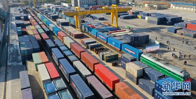 2月17日,中歐班列(南昌)在南昌向塘鐵路口岸等待發(fā)車(無(wú)人機(jī)照片)。 新華社記者 胡晨歡 攝