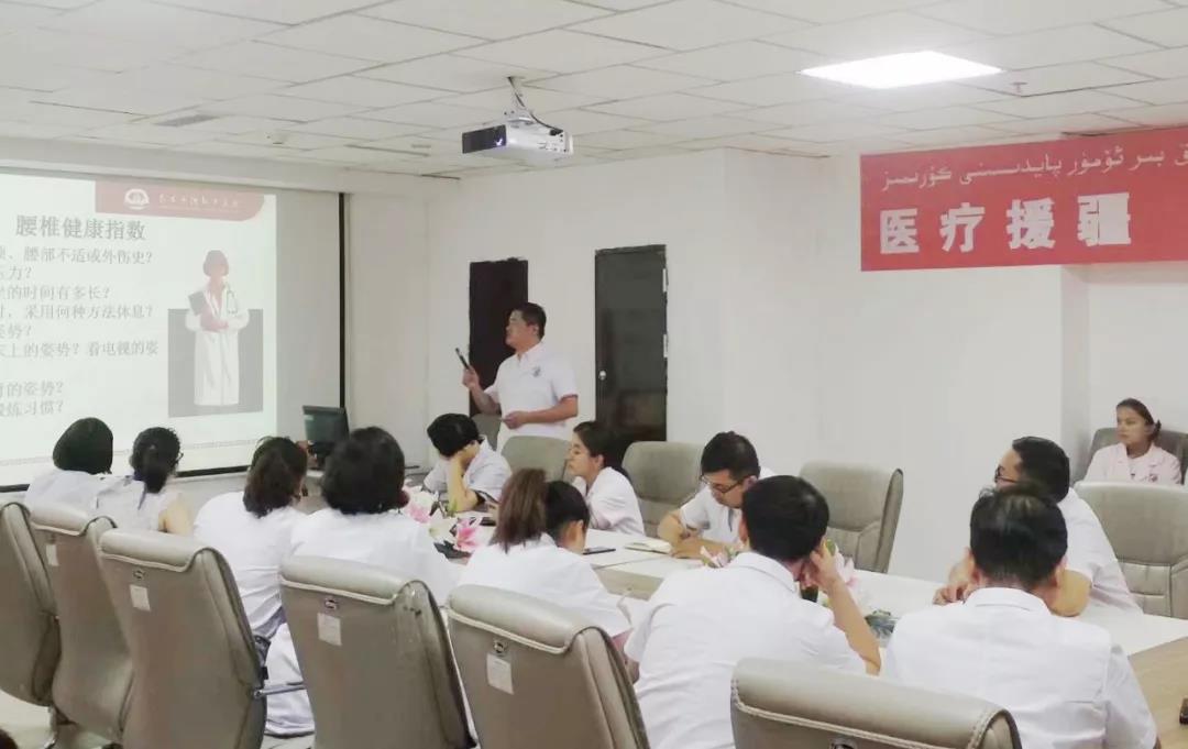 克孜勒蘇中醫(yī)醫(yī)院康復(fù)科醫(yī)師均為90后,由于資歷淺,CT、MRI閱片能力不足,因此診斷能力欠佳,致使治療效果不理想的問題較為突出。了解具體情況后,吳庭勝意識到,光傳授治療技術(shù)遠遠不夠,因為治療手段必須建立在正確診斷的基礎(chǔ)上才有療效。吳庭勝開始反復(fù)、耐心、細致地教導(dǎo)康復(fù)科醫(yī)生閱讀CT、MRI片并研判疾病。在他的帶領(lǐng)下,康復(fù)科成員的閱片能力顯著提升。